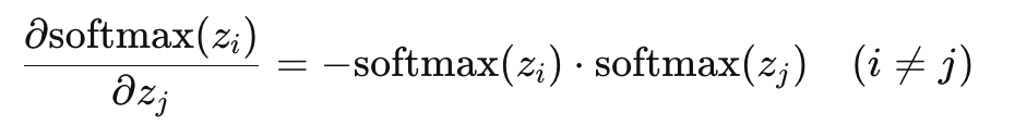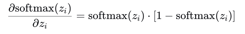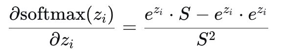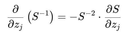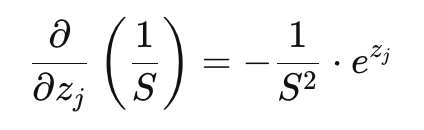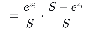- \( \frac{S - e^{z_i}}{S} = 1 - \frac{e^{z_i}}{S} = 1 - \text{softmax}(z_i) \)